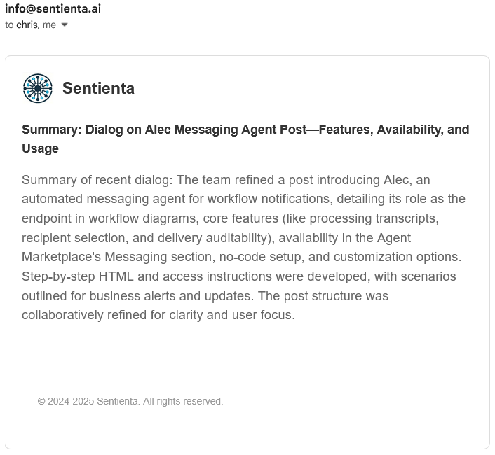 With Sentienta, you can specify how agents think, not just what they say. That makes it possible to design solutions that reflect your institutional values, follow internal processes, and produce outputs that stand up to audit or review. Instead of adapting your use case to fit a generic product, you shape the application to reflect how your organization reasons.