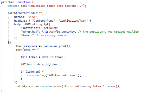 The frontend can be written in plain HTML and JavaScript – no framework required. This keeps the integration minimal and easy to deploy.